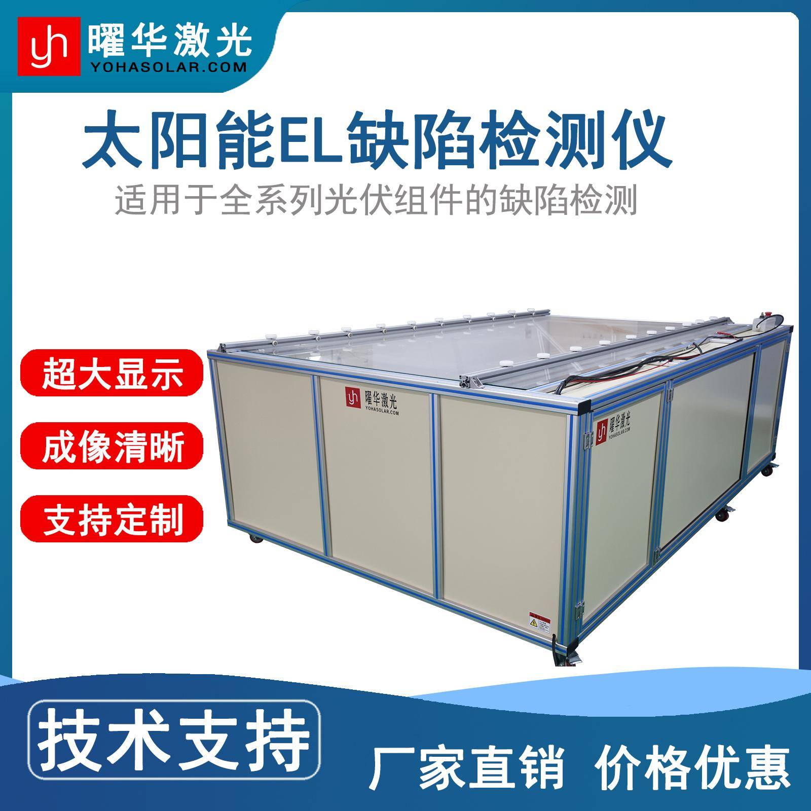 技术指标是衡量设备性能的核心标尺。检测精度直接影响缺陷识别率,例如虚焊检测的准确度需达到行业领先水平;成像速度需与生产线节拍匹配,避免因检测滞后导致产能损失;兼容性要求设备支持不同尺寸、功率的组件规格;软件功能则需具备缺陷分类、数据追溯等智能化模块。以武汉曜华激光科技有限公司为例,其研发的多光谱成像技术可将微小缺陷识别率提升至新高度,满足高精度生产需求。