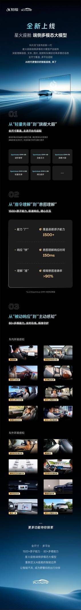 此次车展,科大讯飞iFLYAUTO的展台亮点纷呈,集中展示了三大核心首发技术与产品升级。星火智能座舱3.0部分功能全球首发,iFLYSOUND氮化镓母带级声学系统首发上车体验,海外星火大模型也正式亮相。同时,还配套展示了从座舱、声场到辅助驾驶、车企数智化的全链路智能化能力,实现了AI汽车技术从底层算力到场景落地的全方位升级。