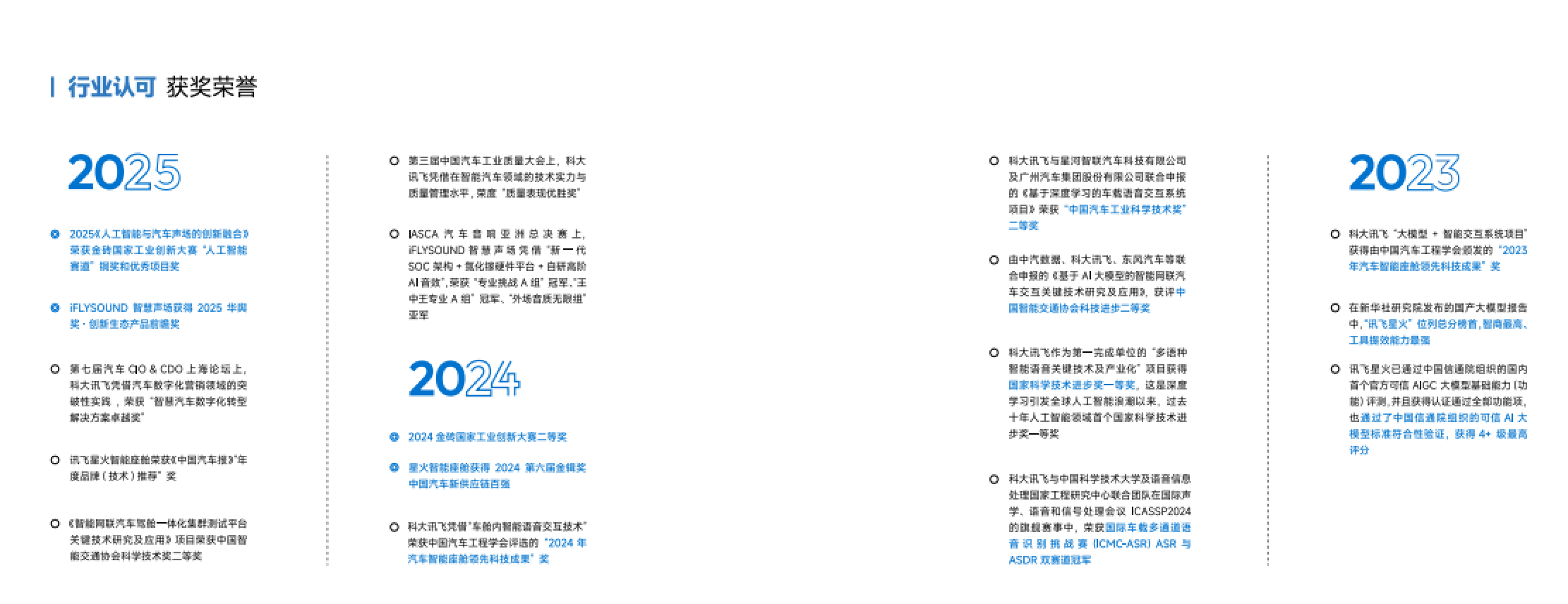 作为亚太地区知名的人工智能龙头企业,科大讯飞在汽车智能化领域成绩斐然。截至2026年3月,已为一汽、东风、长安、大众、日产等数十家车企累计提供前装产品超7300万套,年在线交互次数突破160亿次,讯飞星火大模型已落地30 +款量产车型,车载语音交互市场份额长期稳居行业第一。此次在北京车展的系列发布,科大讯飞不仅完成了自身从智能交互核心技术到全场景智能座舱、智慧声场、辅助驾驶、车企数智化的全链条能力升级,更以全栈自主可控的AI技术底座,为中国汽车品牌的智能化升级与全球化出海提供了有力支撑,推动智能汽车行业进入新的发展阶段。