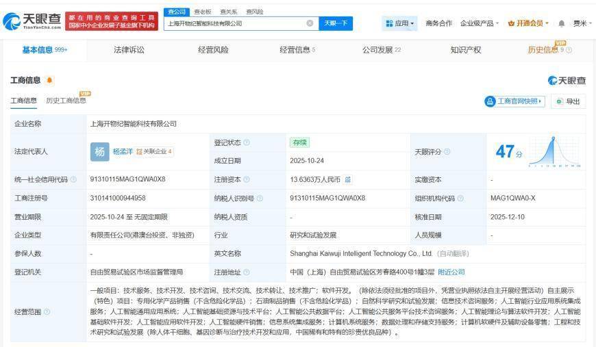 这家成立于今年10月的新锐企业,由法定代表人杨孟洋领衔运营,核心业务聚焦人工智能与材料科学的交叉领域。企业工商登记信息显示,其经营范围涵盖人工智能行业应用系统集成、通用应用系统开发及基础资源技术平台建设。目前股权结构呈现多元化特征,除新晋股东外,还包括自然人陆子恒与北京衍升科技中心(有限合伙)等主体。