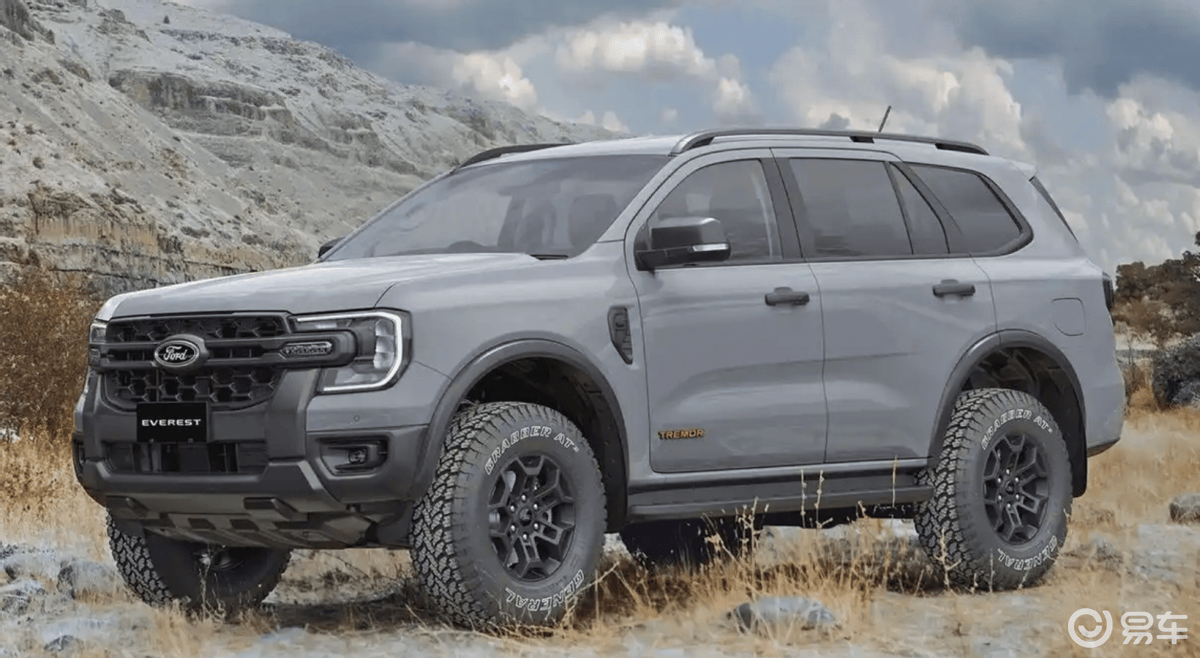 在设计细节上,新车基本延续了福特撼路者柴油版车型的经典设计,不过也进行了独特处理。车身侧面车门处,专属的Tremor黄色标识十分醒目,成为这款特别版车型独特的身份标识。为了满足越野需求,新车在配置方面可谓煞费苦心,配备了Bilstein悬架系统、26mm的空气悬架、17英寸轮圈以及AT轮胎等。这些配置让车辆能够轻松应对各种复杂恶劣的路况,为越野爱好者提供了可靠保障。