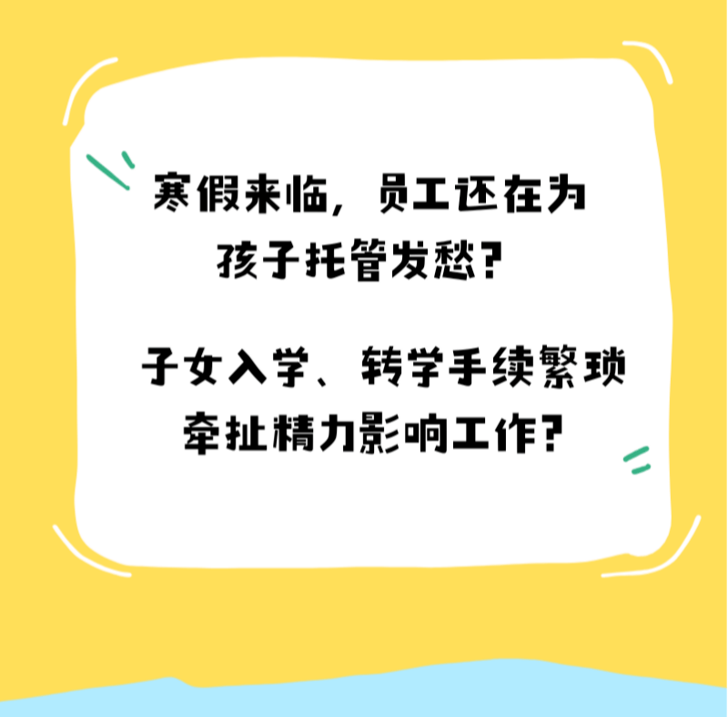 为助力北京通州区企业解决员工子女教育难题,通发展人才近日推出“寒假托管+特色入学转学”双轨服务,通过整合优质教育资源与企业服务经验,为区内企业量身定制教育福利方案,帮助员工平衡工作与家庭责任,推动企业高质量发展。